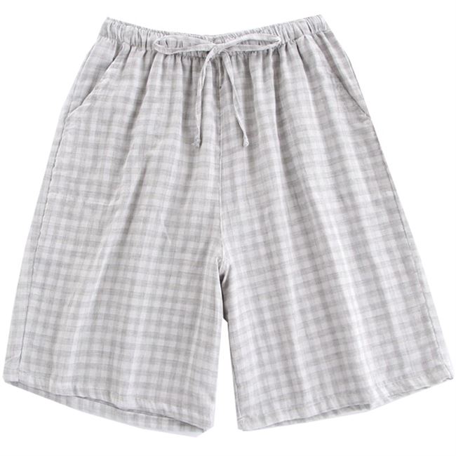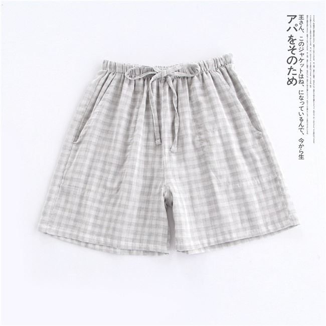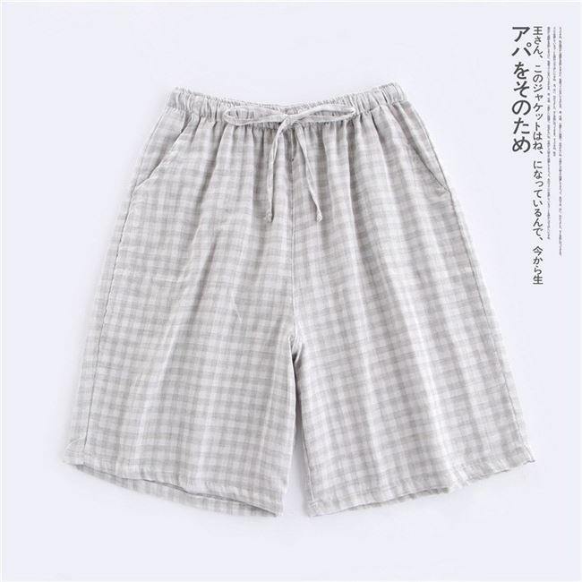 Mô hình mùa xuân và mùa hè Nhật Bản cotton đôi gạc vài quần short pyjama quần nam và nữ quần đi biển rộng kích thước lớn quần nhà - Quần tây quần mặc nhà cho nam giới Quần tây