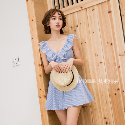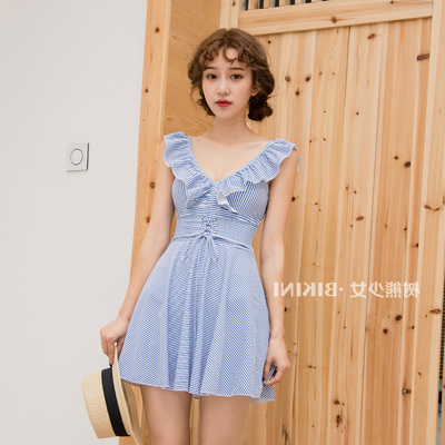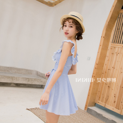 Mới Nhật Bản quai đeo quai nón mỏng bảo thủ học sinh một mảnh váy tắm nước nóng mùa xuân - Bộ đồ bơi One Piece váy bơi liền thân Bộ đồ bơi One Piece