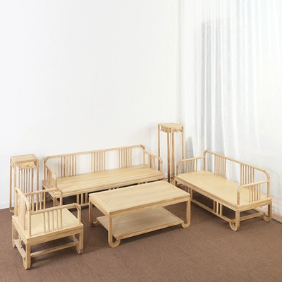 Mới phong cách Trung Quốc sofa hiện đại Zen phòng khách gỗ rắn kết hợp mô hình phòng khách sạn đồ nội thất retro gỗ tro - Bộ đồ nội thất sofa gỗ