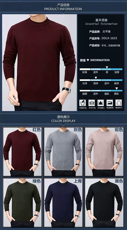 Mùa đông của nam giới áo len kích thước lớn không có khả năng bóng cashmere áo len vòng cổ áo thun dày ấm cũ trung niên cha nạp quần áo thu đông nam Kéo qua