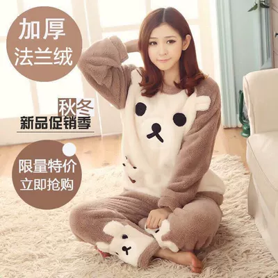 Mùa đông đồ ngủ flannel dày của phụ nữ bộ mặc nhà đẹp