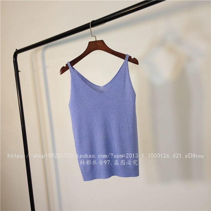 Mùa hè 2018 phiên bản Hàn Quốc mới của chiếc áo ngực tự sướng v-cổ áo dệt kim lụa sáng màu chạm đáy áo yếm đồ mặc nhà Áo ba lỗ