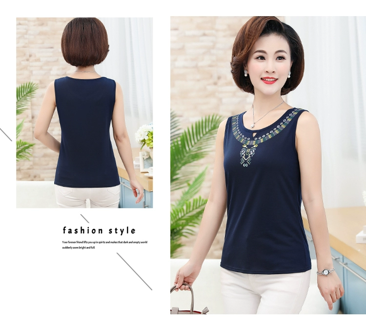 Mùa hè 2019 mẹ trung niên tải áo yếm không tay nữ size lớn rộng rãi bên trong áo sơ mi - Quần áo của mẹ áo khoác trung niên nữ Quần áo của mẹ