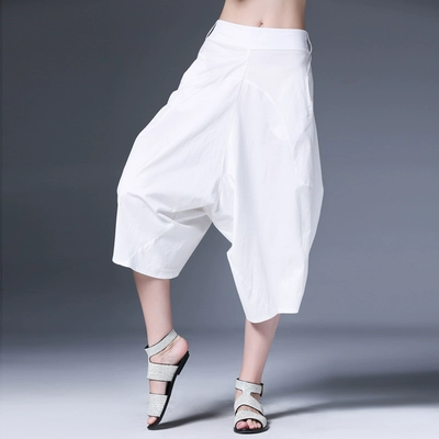 Mùa hè 2019 mới của phụ nữ quần lửng ống rộng bảy chân màu trắng quần âu rộng cỡ lớn quần harem rộng - Cộng với kích thước quần áo măng tô nữ Cộng với kích thước quần áo