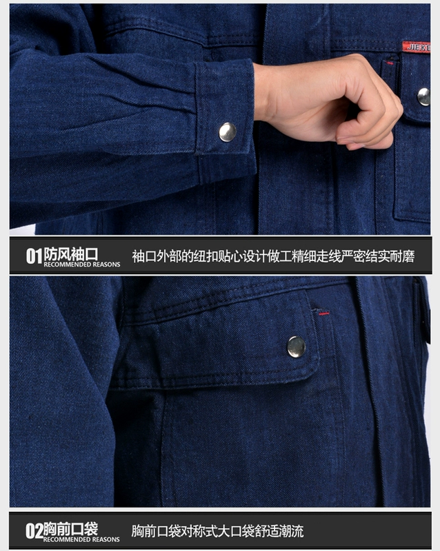 Mùa hè cotton dày điện hàn chống bỏng máy chống cháy tự động sửa chữa denim yếm đặt trang web sơn kích thước lớn nam giới và phụ nữ đồ bộ kiểu đẹp 2021 Bộ đồ