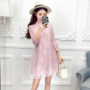 Mùa hè mới tính khí retro sâu V-Cổ ren ngắn tay đầm nữ cao eo Slim dài tóc Một từ váy vay dep Sản phẩm HOT