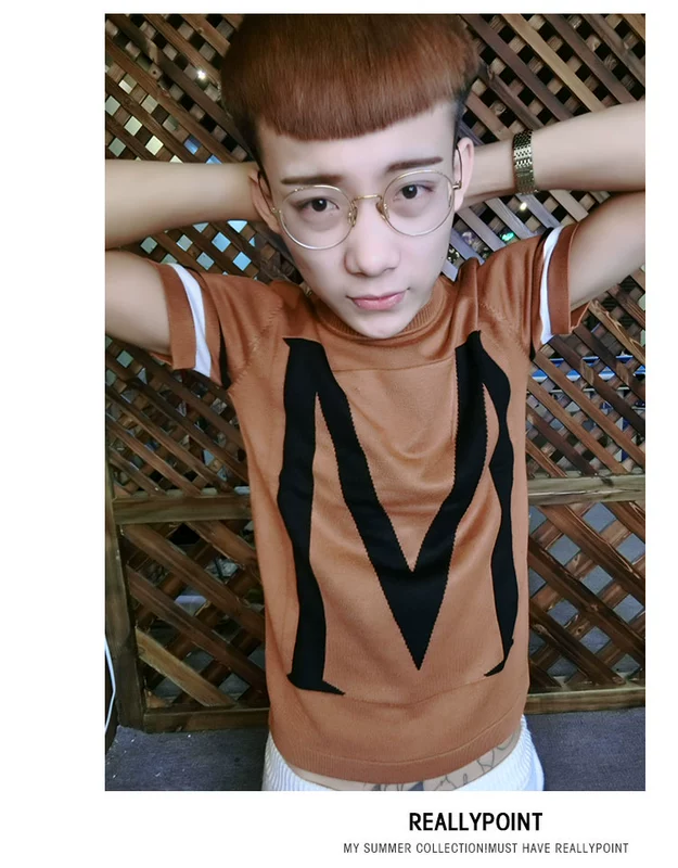 Mùa hè mới tinh thần chàng trai với áo sơ mi ngắn tay nam Hàn Quốc phiên bản của tự trồng tay áo vòng cổ của người đàn ông nửa tay áo len t áo thun nam đẹp Kéo qua