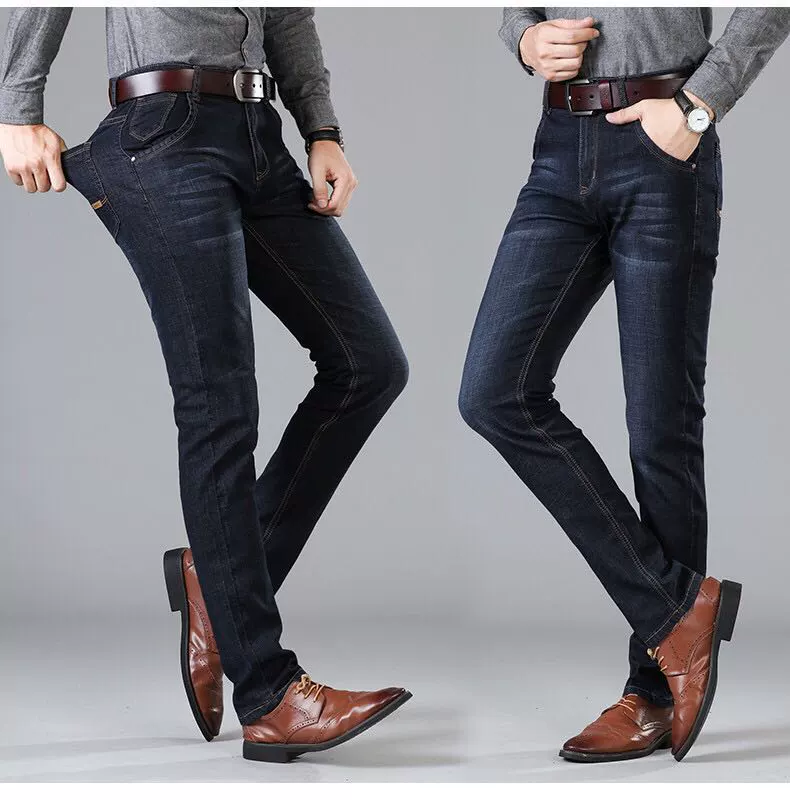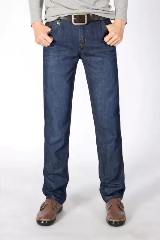 Mùa hè phần mỏng quần jean nam thẳng lỏng kinh doanh bình thường quần denim thanh niên cộng với phân bón XL quần nam, vv. áo thể thao nam