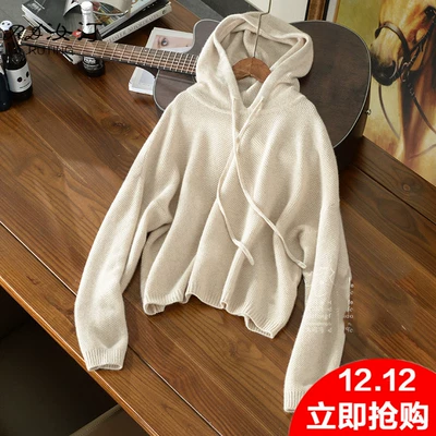 Mùa thu đông 2018 áo len cashmere mới của phụ nữ đội mũ trùm đầu phụ nữ áo len lỏng lẻo áo len đan đáy áo phiên bản Hàn Quốc áo len cánh dơi