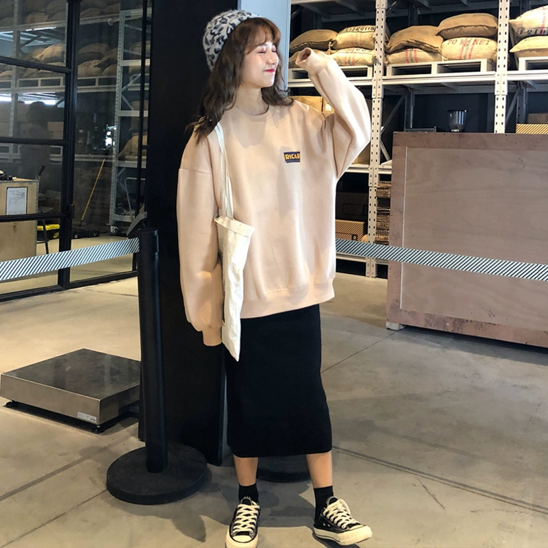 Mùa thu đông 2018 mới của phụ nữ phiên bản Hàn Quốc của phần dài của thư phong cách Harajuku cộng với áo len dày nhung lỏng áo kiểu nữ cao cấp Áo len