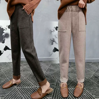 Mùa thu đông 2018 mới của phụ nữ quần len giản dị quần ống rộng ống rộng quần quần dày harem quần chân hoang dã quần âu nữ