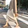 Mùa thu đông Hàn Quốc mới Hồng Kông phong cách retro eo cao kẻ sọc váy len nữ sinh viên sang trọng dài một đoạn váy chân váy xếp ly Váy