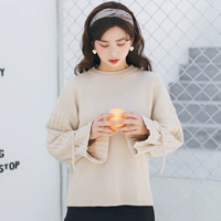 Mùa thu Hàn Quốc retro Hồng Kông hương vị sang trọng hoang dã cổ tròn áo thun sọc áo len lỏng mỏng dài tay áo len phụ nữ ao khoac len dep Áo len