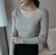 Mùa thu và mùa đông áo len bó sát của phụ nữ đầu dài tay áo phía trước và phía sau cổ chữ V thon gọn cổ áo thấp phần mỏng áo len chạm đáy áo len cổ cao