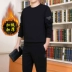 Mùa thu và mùa đông bộ đồ thể thao nam mới cộng với nhung dày giữa và tay áo dài hai mảnh phù hợp với bộ đồ chạy bộ quần bò nam Bộ đồ