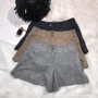 Mùa thu và mùa đông quần short len ​​mặc quần cạp cao, quần ống rộng phía dưới là quần lửng ống rộng mới rộng chân dày quần đùi nữ đẹp Quần short