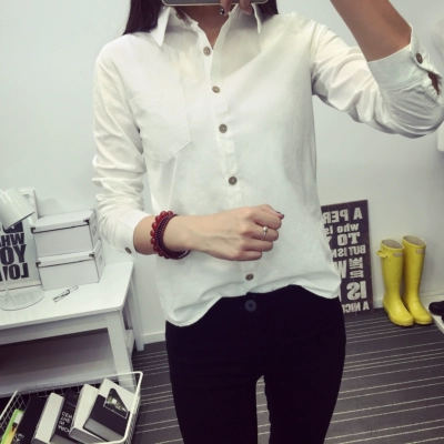 Mùa xuân 2018 mới áo sơ mi trắng nữ dài tay phiên bản Hàn Quốc của áo rộng kích thước lớn phần dài khóa gỗ chạm đáy áo cotton các kiểu áo vest nữ hàn quốc