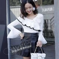 Mùa xuân 2018 mới và áo sơ mi nữ size lớn phiên bản Hàn Quốc của áo sơ mi cổ lọ họa tiết cánh sen so mi nu Áo sơ mi chiffon ren