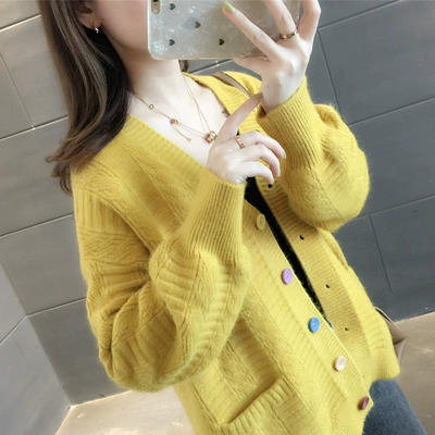 Mùa xuân 2019 mới V-cổ xoắn áo len áo len cardigan màu rắn bỏ túi áo len lỏng áo sơ mi hoang dã - Đan Cardigan áo len đỏ Đan Cardigan
