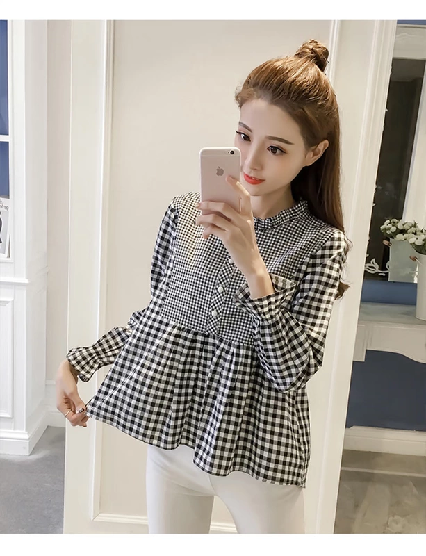 Mùa xuân thu 2018 mới ngọt ngào áo sơ mi tươi mới phiên bản Hàn Quốc của áo dài tay rộng một chiếc áo sơ mi kẻ sọc kẻ sọc áo sơ mi nữ hàn quốc cao cấp Mùa xuân