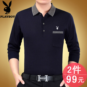 Mùa xuân và mùa hè nam dài tay trung niên nam dài tay t-shirt kích thước lớn ve áo cha mặc trung niên dài tay áo len t áo unisex form rộng