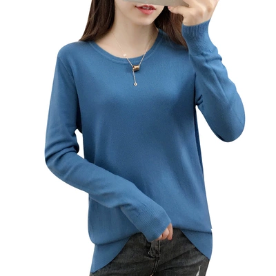 Mùa xuân và mùa thu 2018 nhỏ cổ tròn áo len màu rắn nữ áo sơ mi dài tay áo sơ mi áo thun rộng bên trong áo len size lớn - Đan Cardigan thời trang công sở nữ Đan Cardigan