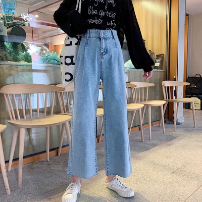 Mùa xuân và mùa thu 2019 mới eo cao treo quần ống rộng Quần nữ thẳng 泫 ya quần jeans rộng đã mỏng - Quần jean quần jean dài Quần jean
