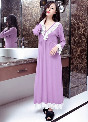 Mùa xuân và mùa thu kích thước lớn gợi cảm V-cổ cotton dài váy ngủ nữ dài tay ren công chúa đồ ngủ váy dài shop váy đẹp Đêm đầm