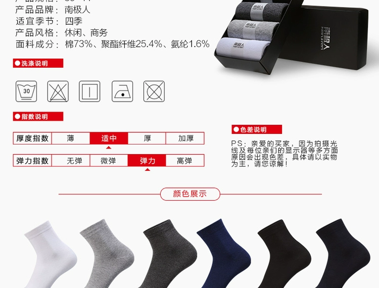 Nam Cực 5 cặp hộp quà tặng, vớ cotton trắng, phần mỏng nam, bốn mùa, ống kinh doanh, bông nam, dải bện, mùa hè set vớ nam đẹp Bộ quà tặng