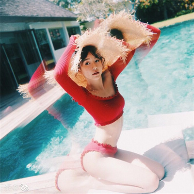 Net đỏ gợi cảm ống top từ vai cỡ ngực chia bikini bikini kỳ nghỉ áo tắm phụ nữ - Bộ đồ bơi hai mảnh đồ bơi 2 mảnh cổ yếm Bộ đồ bơi hai mảnh