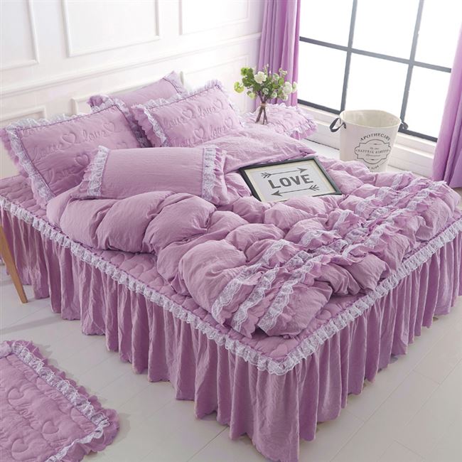 Net red girl heart cotton wash cotton bed bed bed cover bốn bộ ren cotton quilted bed set phần công chúa gió - Váy Petti váy giường đẹp Váy Petti
