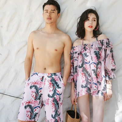 New retro bãi biển kỳ nghỉ cặp vợ chồng đồ bơi phụ nữ bikini ba mảnh phù hợp với cặp vợ chồng đồ bơi 	đồ đôi maxi đi biển
