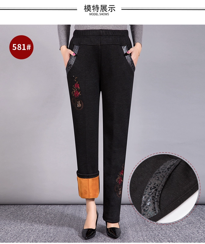 Người trung niên và béo cộng với quần XL mùa thu và quần mùa đông 200 kg mẹ béo thả lỏng cộng với quần nhung 40-50 tuổi đầm xòe tuổi trung niên Quần áo của mẹ