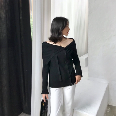 Nora 2018 mùa thu mới đi lại hoang dã thời trang quây áo v-cổ đan áo len nữ thủy triều hoang dã áo len gile nữ