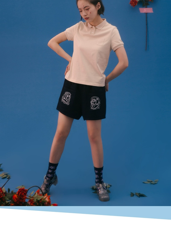 Omont trứng tart lỏng giản dị eo cao đàn hồi eo mô hình hoạt hình thêu lanh rộng chân quần short nữ mùa hè - Quần short thời trang công sở nữ Quần short