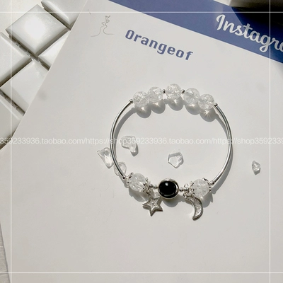 "Orange" Moon Stars Chensen Strawberry Crystal Peach Bracelet Vòng đeo tay chuyển giao Obsidian Sterling Lễ khai mạc - Vòng đeo tay Cuff ngọc hồng lựu Vòng đeo tay Cuff