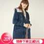 Peacock Feifei 2018 mùa đông mới lỏng lẻo trùm đầu mỏng cotton giản dị màu nữ dài phần áo denim kích thước lớn - Bông áo phao béo Bông