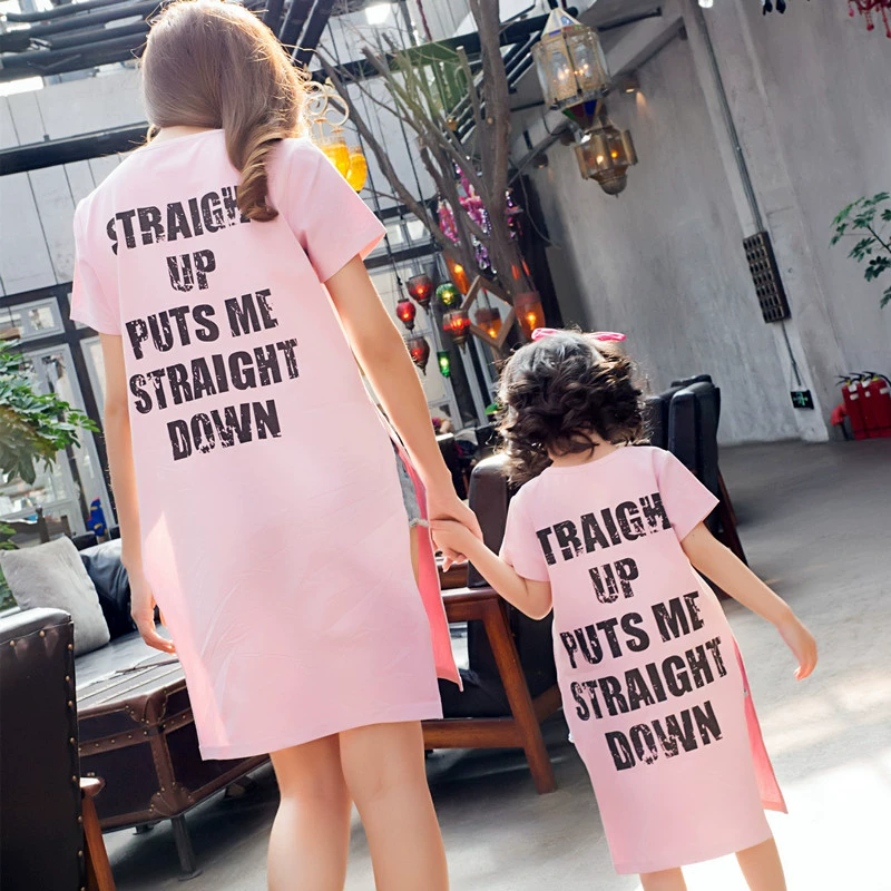 Phiên bản Hàn Quốc của gia đình vui nhộn hè hè 2019 làn sóng mới của gas nữ ngoại váy đầm nữ giản dị mùa xuân - Trang phục dành cho cha mẹ và con áo váy gia đình