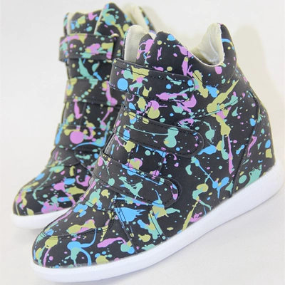 Phiên bản tiếng Hàn của thời trang graffiti cao để giúp giày nữ bình thường Giày nữ đường phố tăng trong giày thể thao nữ Velcro Giày cao gót