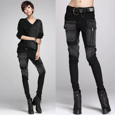 Phong cách châu Âu và mùa xuân và mùa thu mới đường phố cá tính denim túi lớn khâu quần harem nữ Slim mỏng chân quần thủy triều - Khởi động cắt quần nữ lót lông Khởi động cắt