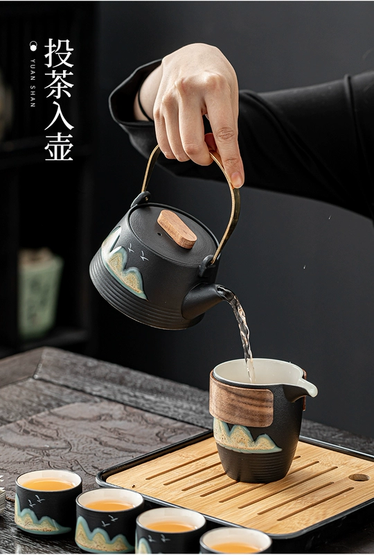 bình lọc trà thủy tinh Phong Cách Nhật Bản Từ Xa Du Lịch Núi Kungfu Trà Hộ Gia Đình Khay Trà Một Nồi Bốn Ly Lọc Đơn Giản Ấm Trà Túi Di Động bộ Nhỏ cốc uống trà Trà sứ