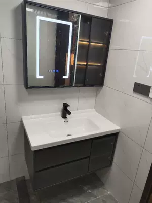 Phòng tắm đơn giản chậu rửa gốm tích hợp lưu vực chậu rửa thông minh đặt sàn ánh sáng kết hợp tủ phòng tắm sang trọng gương mây Gương