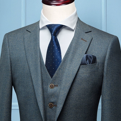 Phù hợp với phù hợp với nam giới ba mảnh chú rể áo cưới mỏng màu xám kinh doanh bình thường phù hợp với chuyên nghiệp người đàn ông ăn mặc quần âu Suit phù hợp