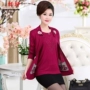 Phụ nữ trung niên mới xuân hè quần áo phần mỏng ve áo sơ mi denim dài tay áo sơ mi cũ áo sơ mi cỡ lớn áo kiểu u50 Phụ nữ cao cấp