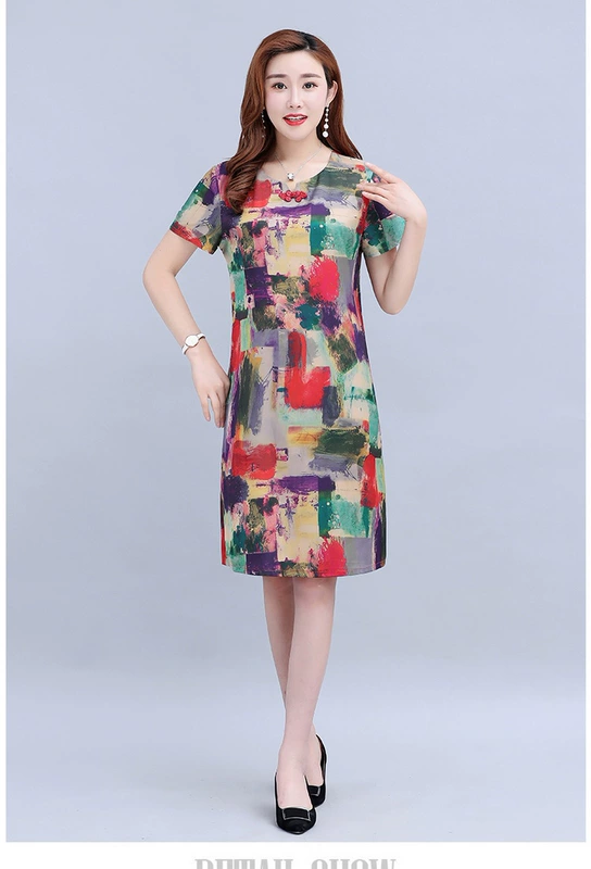 Phụ nữ trung niên mùa hè ăn mặc váy lụa dáng người mẫu có kích thước lớn mẹ tải với váy ngắn tay dài thanh lịch - Quần áo của mẹ áo khoác cho phụ nữ 50 tuổi Quần áo của mẹ