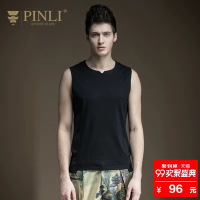 PINLI sản phẩm mùa hè người đàn ông mới của slim body sleeves màu rắn bông không tay mồ hôi vest S172414079 áo thể dục chấm com Lót