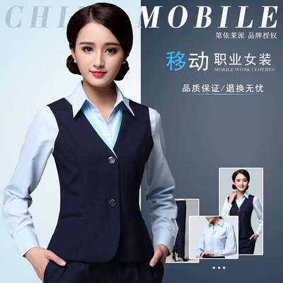 Quần áo bảo hộ lao động Trung Quốc Vest chuyên nghiệp Nữ di động bán hàng đồng phục Công ty di động Bao Blue Polo Vest đầm dài qua gối cho tuổi trung niên Áo vest