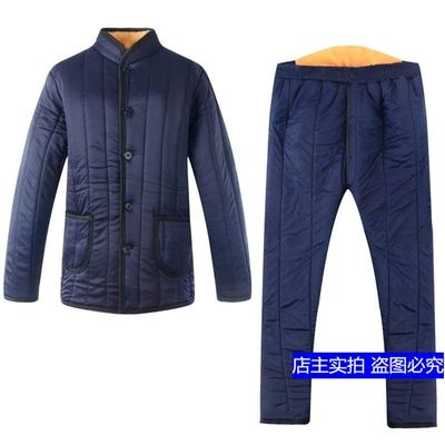 Quần áo cotton mùa đông quần cotton nam thiết lập cộng với nhung dày cộng với phân bón XL bên trong và bên ngoài mặc quần áo cotton trung niên set đồ đôi nam nữ Bộ đồ