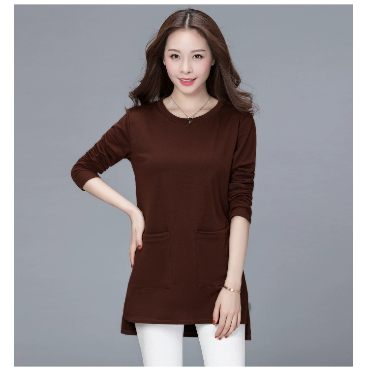 Quần áo Fei Po mùa xuân và mùa thu mặc áo sơ mi chạm đáy mẹ trung niên béo MM cộng với phân bón XL áo hở bụng của phụ nữ váy cho người trung tuổi