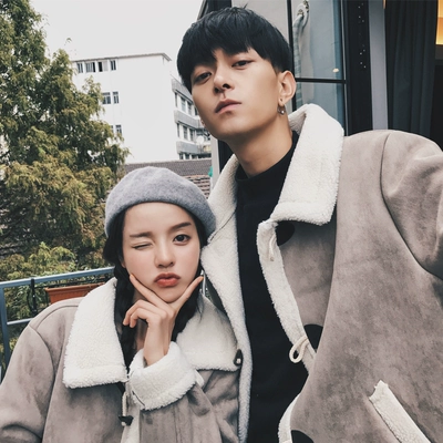 Quần áo mùa đông cotton ngắn cộng với nhung lỏng lẻo Đàn ông và phụ nữ Hàn Quốc mô hình lông cừu cổ áo dày học sinh áo khoác cotton BF áo phao lông vũ Bông